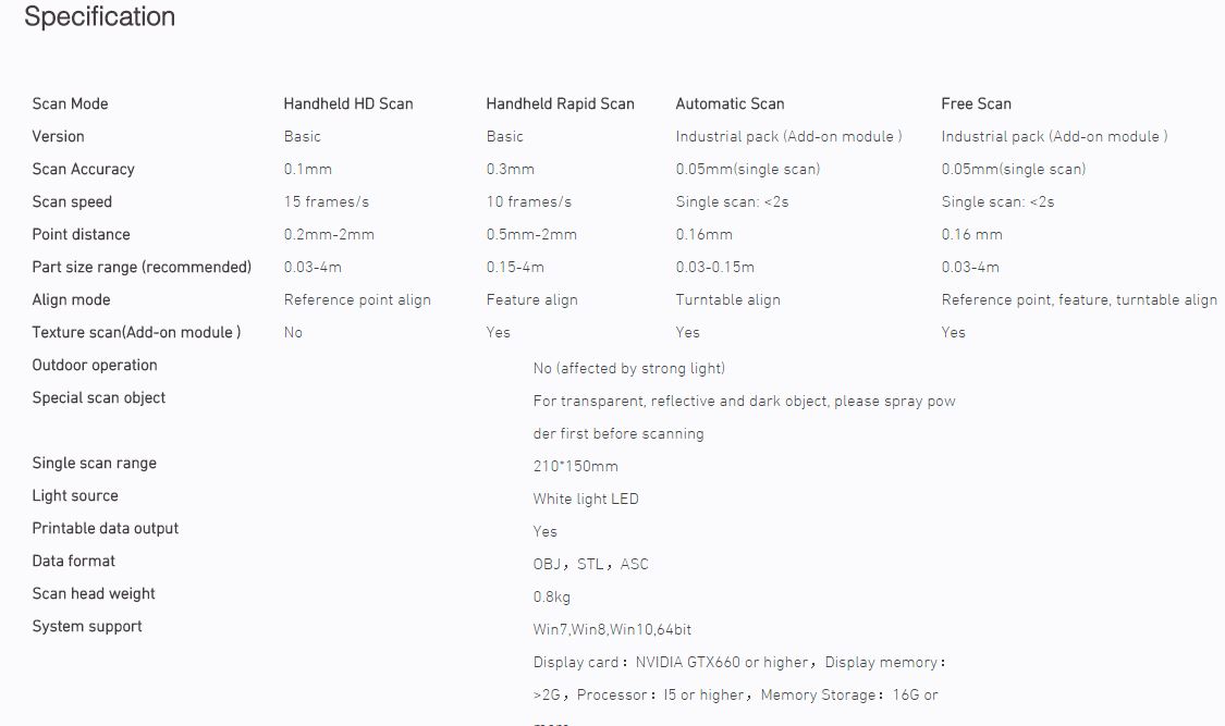 The scanner is equipped with texture scan function, capable of capturing the full colour 3D data of the object. EinScan-Pro has an ergonomic design and only weights 0.8kg, which is quite light and portable, making it ideal for handheld 3D scanning.